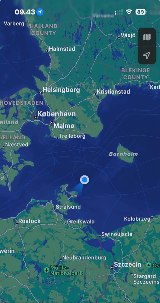Vi er kommet godt fra start. Kl. 8 gik færgen planmæssigt fra Rønne med kurs mod Sassnitz.