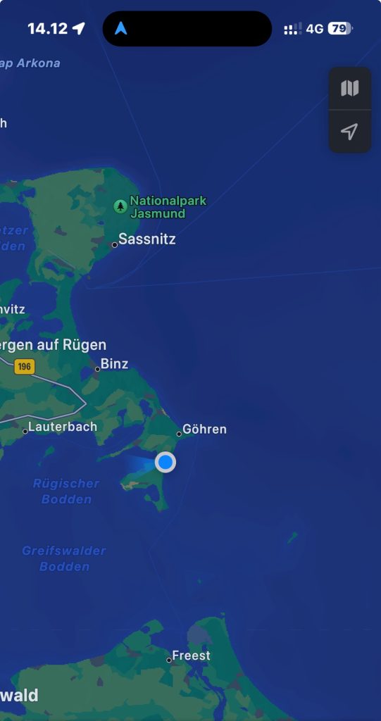 Efter anskomst med færgen fra Bornholm går turen stik syd langs kysten og forbi det enorme boligkompleks Prora.