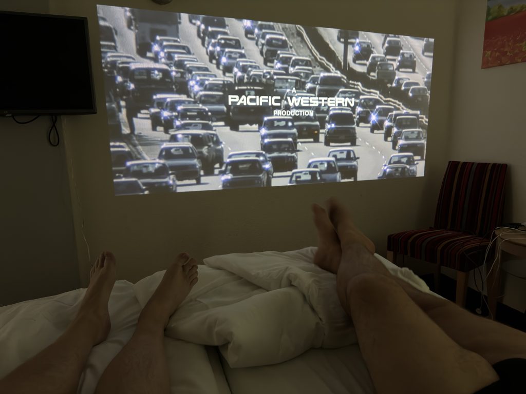 Og så i biffen, for naturligvis har vi projektoren med til at slappe af. Aftenens film var Terminator 2- Judgement day.